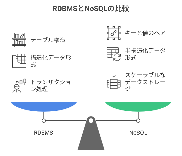 • デメリット: トランザクション処理や整合性管理がRDBに比べて難しい