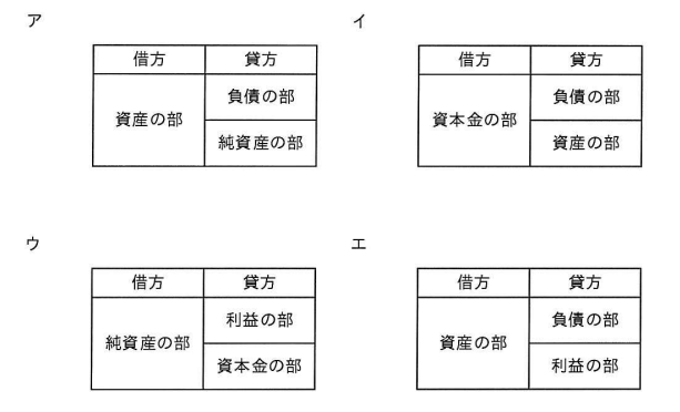 エ(借方 資産の部、貸方 負債の部、利益の部):