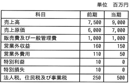 前期と当期の損益計算書を比較したとき、前期から当期における変化の説明として、適切なものはどれか。