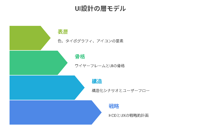 - インタフェース設計:ユーザーとシステムの接点の設計全般。情報設計と視覚設計を接続します。