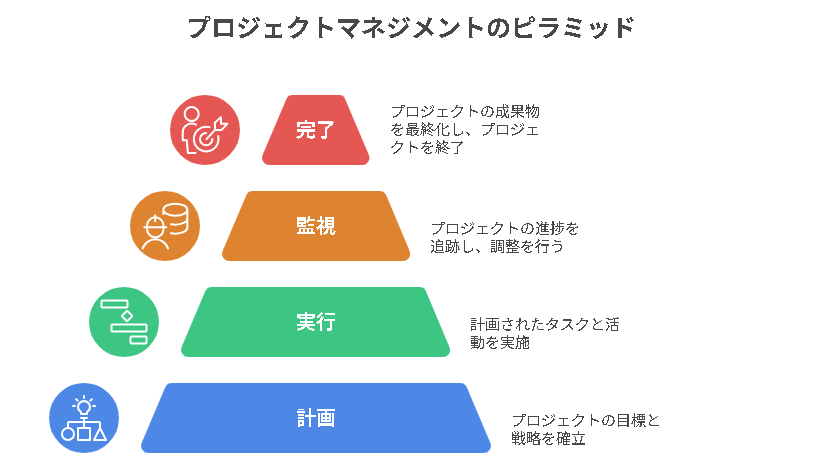 プロジェクトは、一時的かつ独自の目的を持つ作業であり、日常業務とは異なります。そのため、効率的にプロジェクトを進行させるためのマネジメントが不可欠です。プロジェクトマネジメントは単に作業を管理するだけでなく、関係者間のコミュニケーション調整やリスク対応も含まれます。
