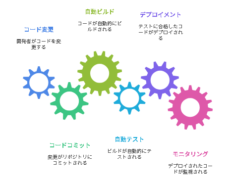 - CI(継続的インテグレーション):コードの変更を頻繁に統合し、自動テストを実行する仕組み。