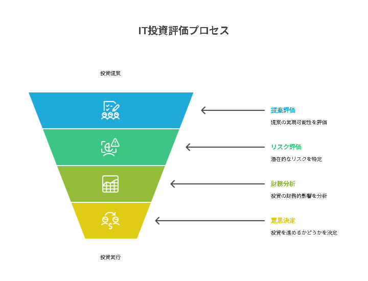 • IT投資:情報システムやIT機器の導入にかかる費用や資源の投入。投資の成果を最大化することが重要です。